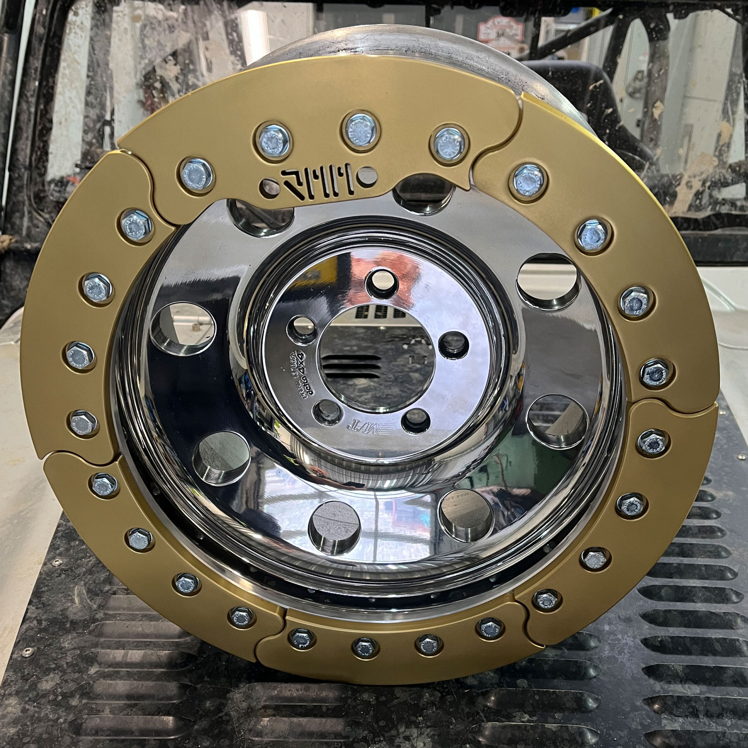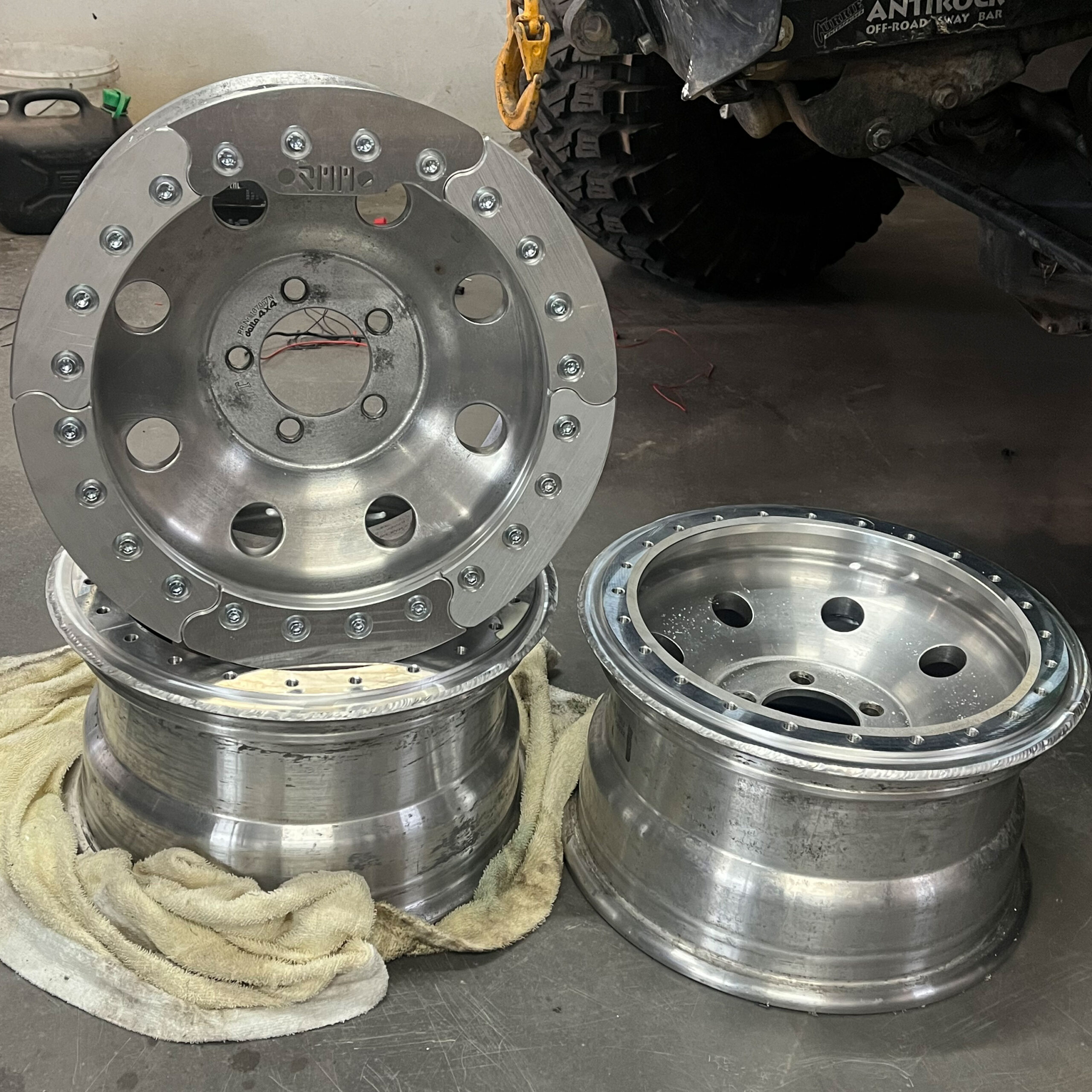 All we need from you is your wheel prepared for polishing, powder coating or painting after the machining and welding Process. We will machine down the outer lip of your rim, weld on the beadlock ring inside and outside, machine it again and put in the threaded inserts for bolting the segment rings to complete the Beadlock System. We then send back your wheels to finalize your paint or polish or whatever finish you plan to have.