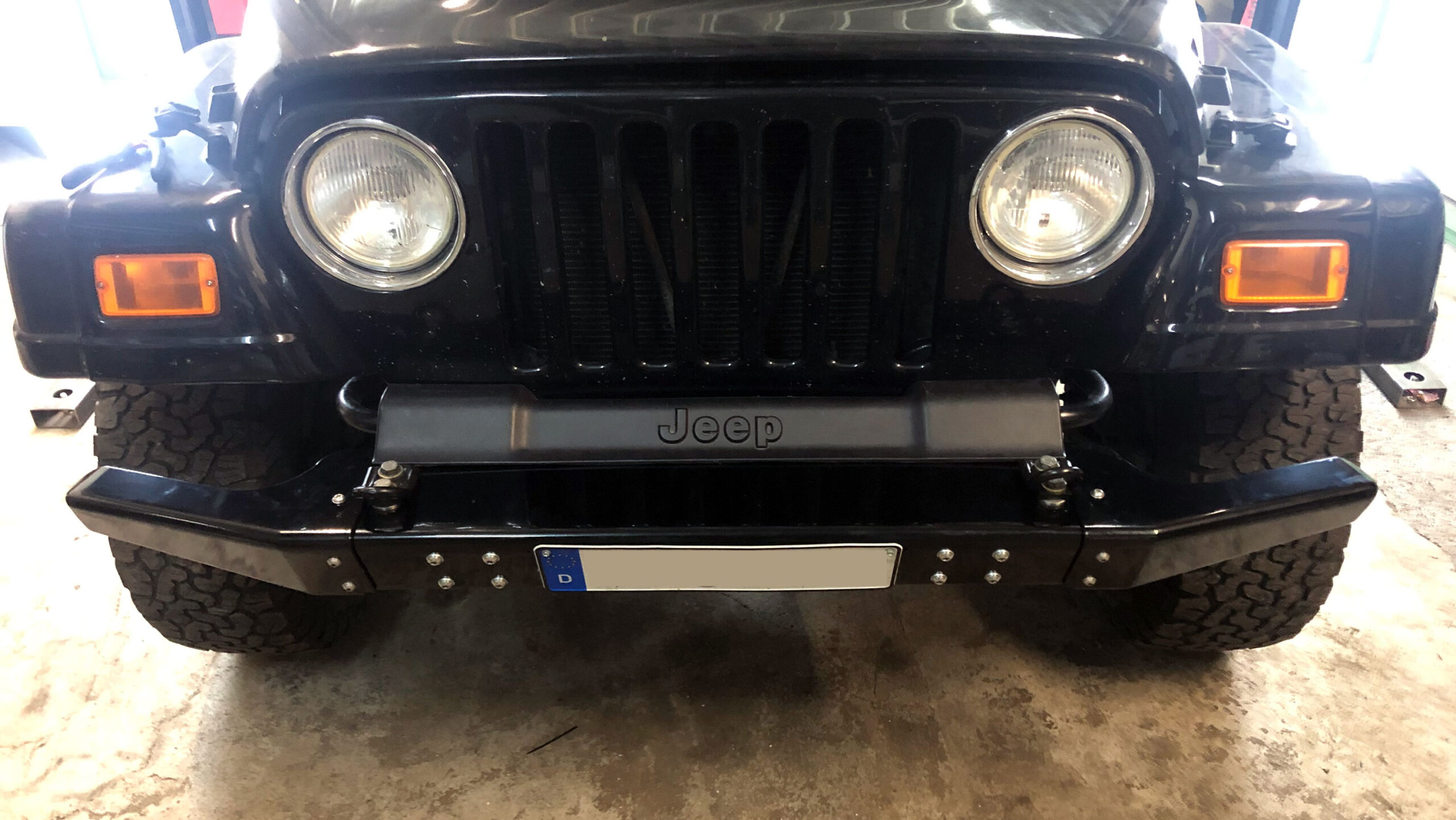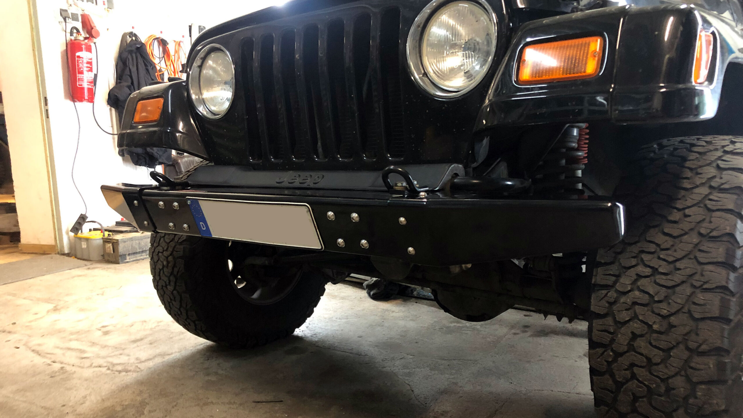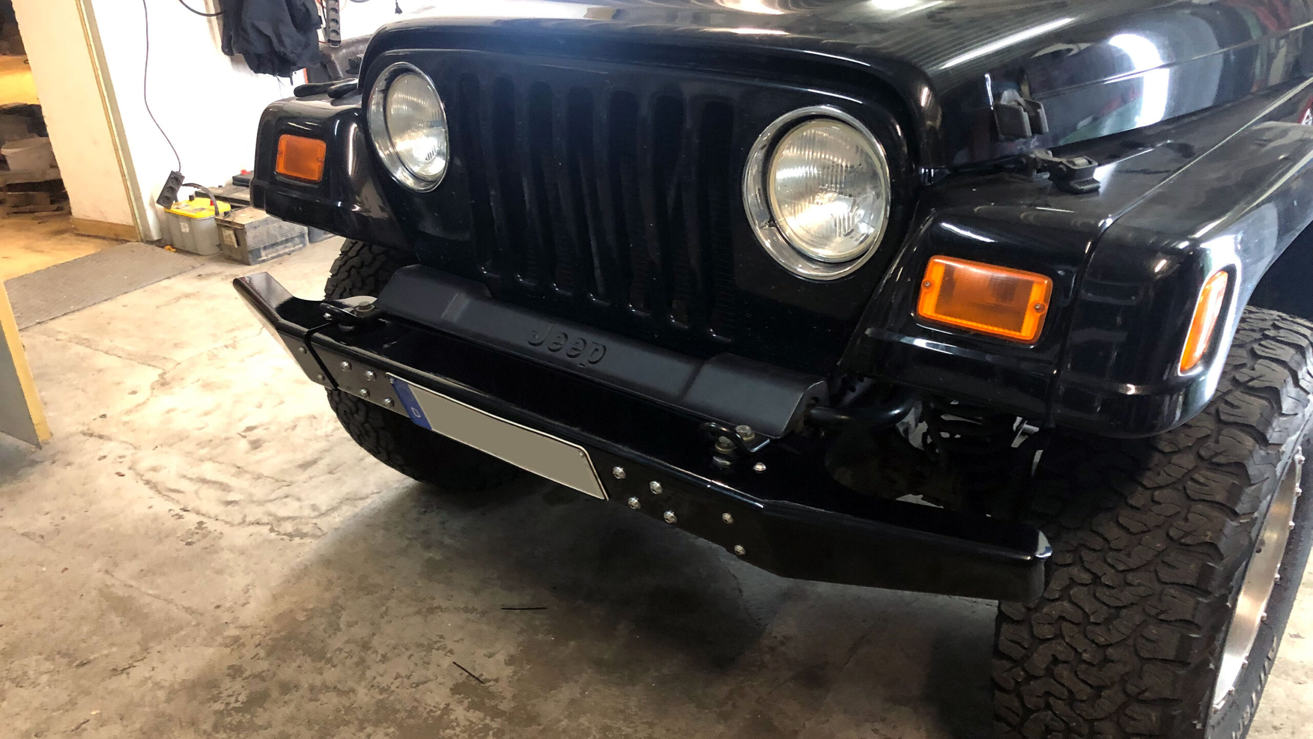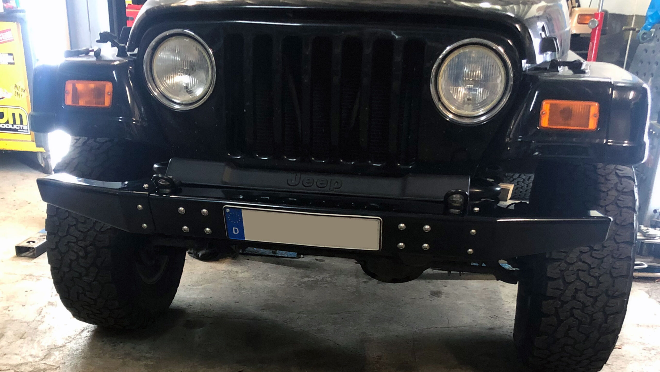 Of course, there are plenty of Aftermarket Bumpers available but ours is special! Not only it’s made from AlMg3 Aluminum, it also comes with detachable steel corners . Why? Using your TJ on the Road causes some compromises which are not optimal for wheeling. That’s why we designed this beauty. The corners are bolted to the bumper with three bolts each. After removing them you will have maximum wheel clearance up front.