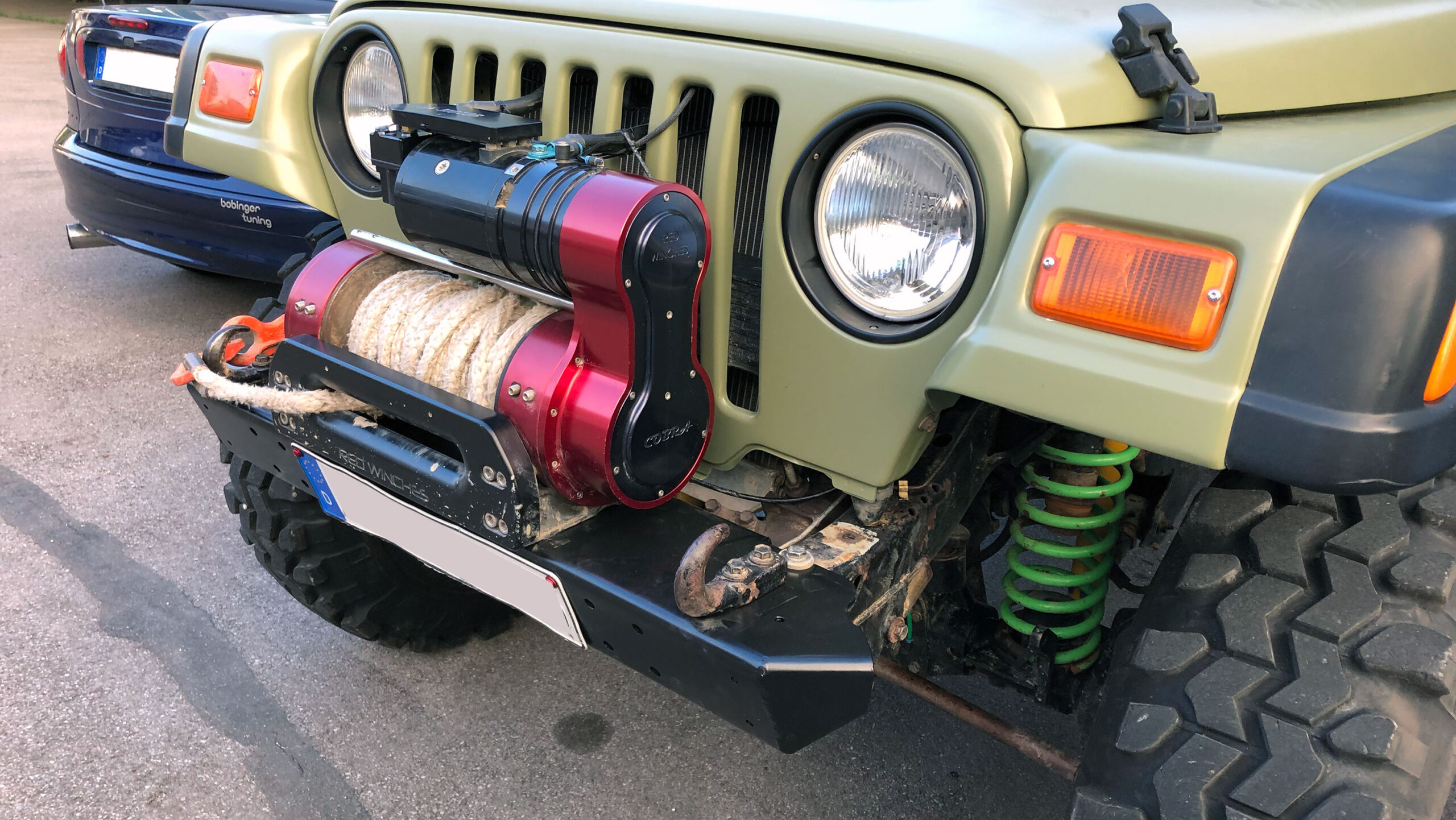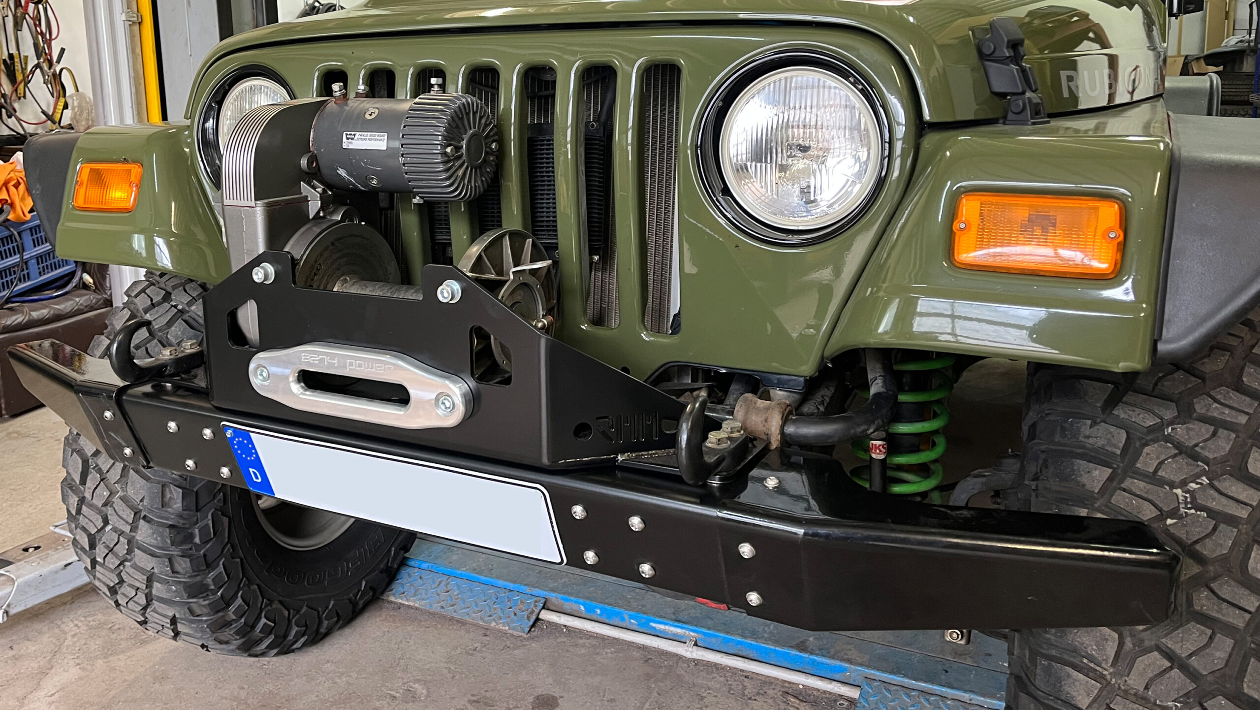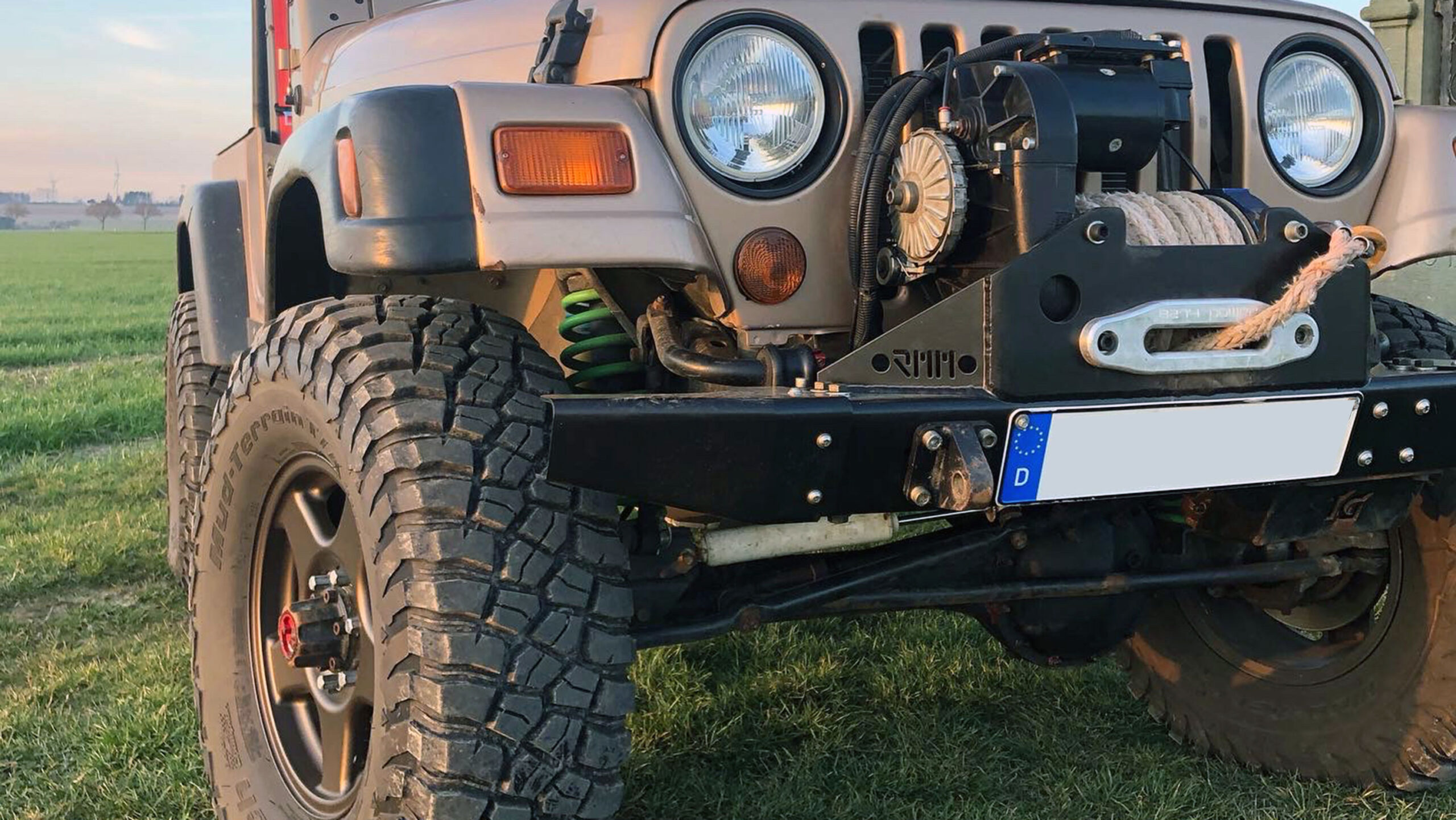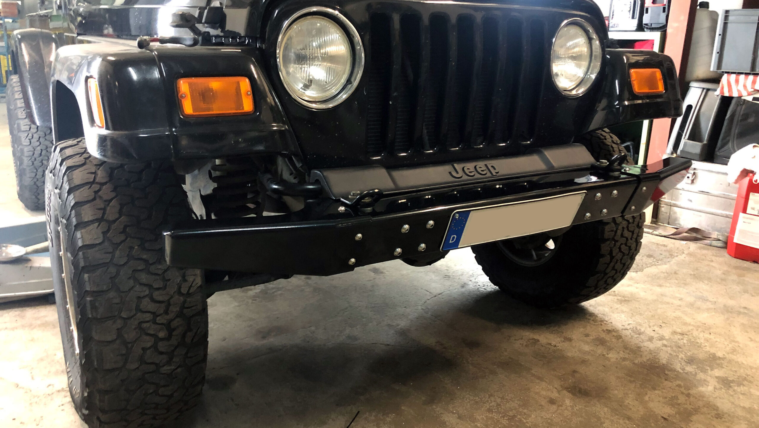 Of course, there are plenty of Aftermarket Bumpers available but ours is special! Not only it’s made from AlMg3 Aluminum, it also comes with detachable steel corners . Why? Using your TJ on the Road causes some compromises which are not optimal for wheeling. That’s why we designed this beauty. The corners are bolted to the bumper with three bolts each. After removing them you will have maximum wheel clearance up front.