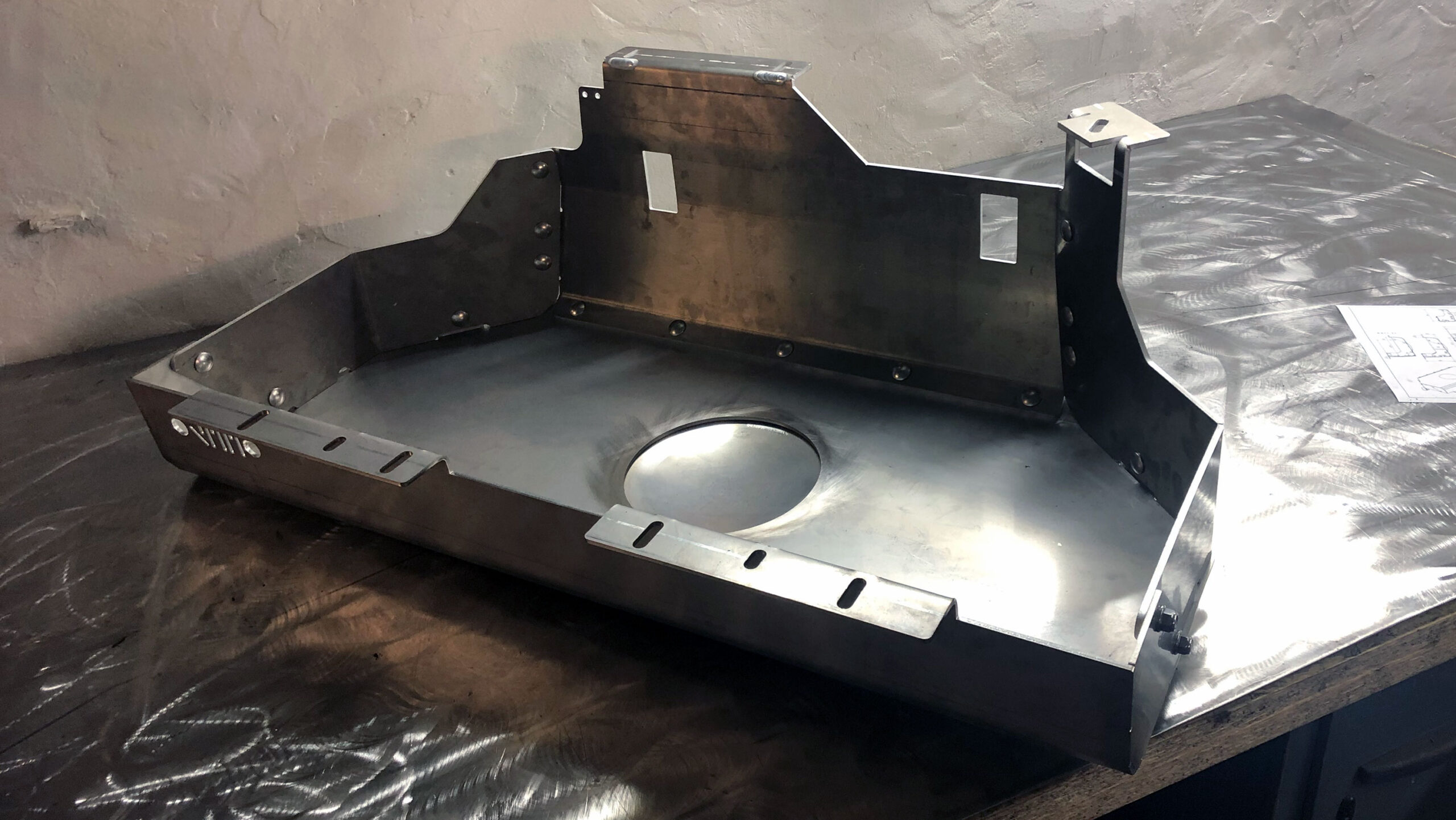 Therefore, we invented a skid Plate which is way stronger than the stock or the Aluminum Aftermarket Versions but only add as much as necessary additional weight to the TJ. Our Skid Plate consists of a mix of 4mm Stainless steel at the rear section for impact strength, a 4mm reinforced Stainless lower Section against impact and best ability to skid over rocks. Aluminium in this position acts like glue on Rocks and wears very quick. We also added a pump sump plate which adds streght to this section and saves the pump assembly. The side panels and the front mounting brackets are made from AlMg3 Aluminium, to reduce the weight where it’s not necessary to be.