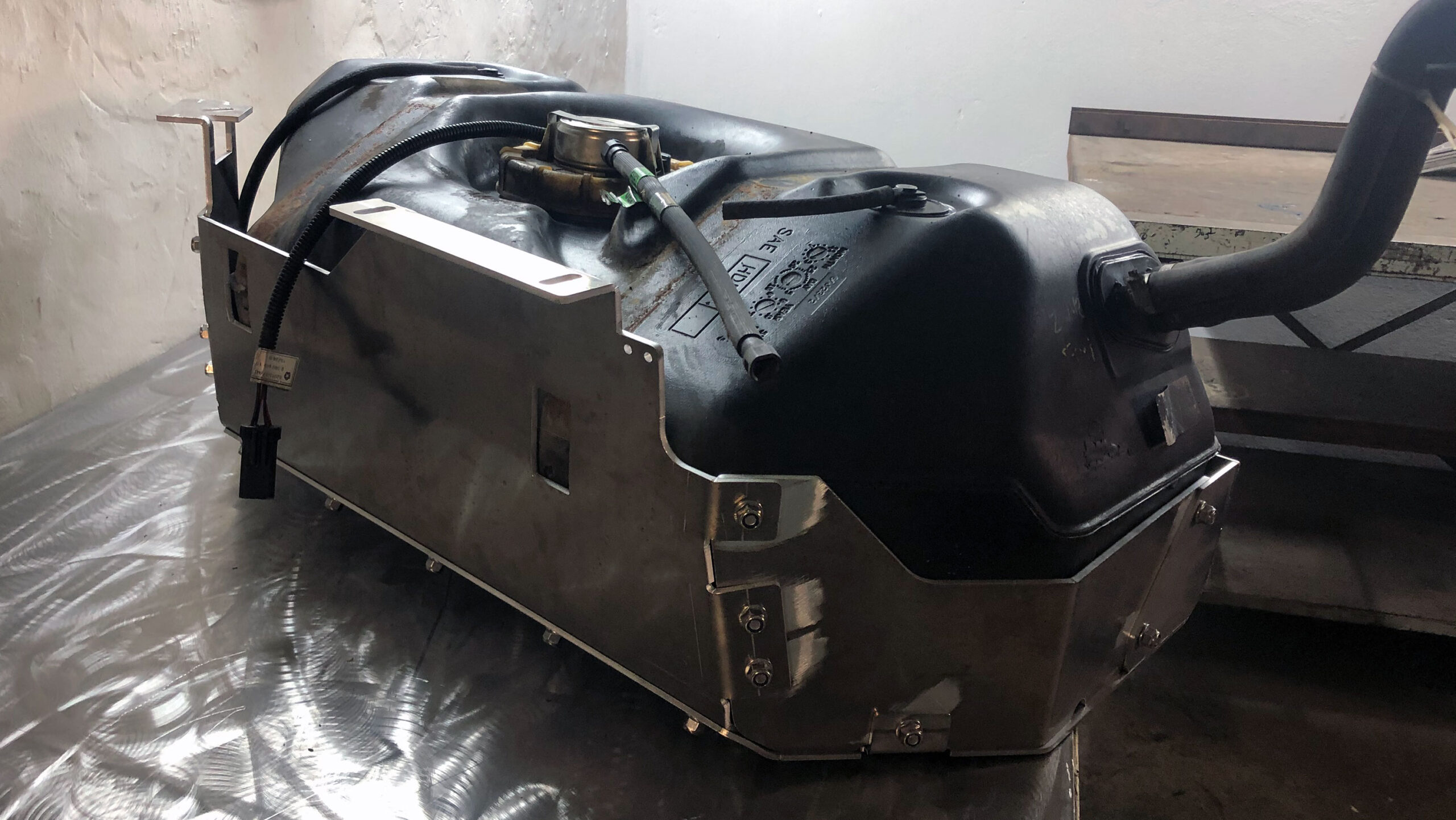 During excessive testing on our own TJ and from collected knowledge of friends and customers we figured out, that neither the stock versions or the Aluminum light weight Version of the Tank Skid Plates for the Wrangler can withstand the hits of rocks or other hard Impacts for long. Putting the Tank to another Position is no Option for us, since we will keep the Car also Street usable and Legal.